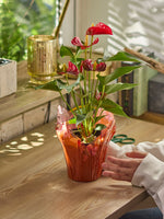 Celebrate the beauty of fall with the Amberleaf Pot Cover, designed to add warmth and elegance to seasonal plants. Featuring rich auburn tones accented by multicolored autumn leaves, these pre-formed pot covers make every plant instantly gift-ready while saving you time and effort.