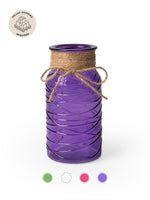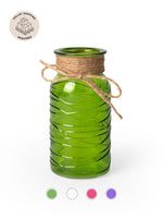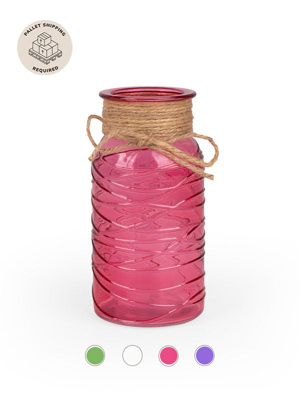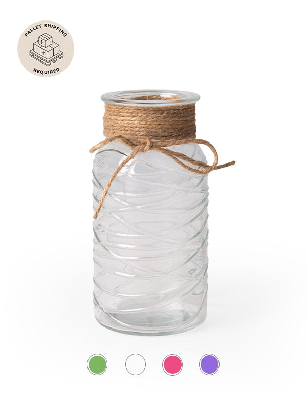 The Fate Glass Vase features a textured glass design accented with a decorative jute band, adding a natural, rustic touch to floral arrangements and displays.