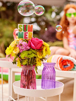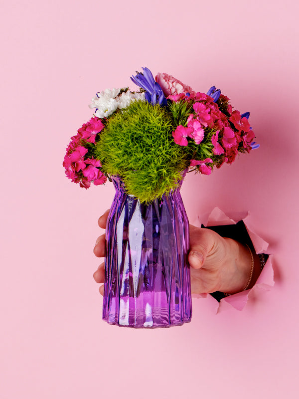 The Marlow Glass Vase features a ribbed glass design with a wider opening and taller profile, making it ideal for fuller floral arrangements and elevated presentations.