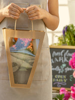 Ensure the safety of your floral arrangements, plants, and other products with our Kraft Window Bags. These versatile bouquet bags offer secure transportation for fragile items while enhancing their presentation with a beautiful gift-wrapped appearance.