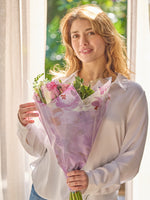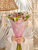 The Magnolia Floral Sleeve combines the charm of a hand-wrapped bouquet with the convenience and affordability of a standard floral sleeve. Its soft floral-print design and prefold-inspired peaks create an upscale presentation, while the semi-translucent finish allows the beauty of your flowers to shine through. This cost-effective option mimics the look of premium non-woven wrapping without the added expense.